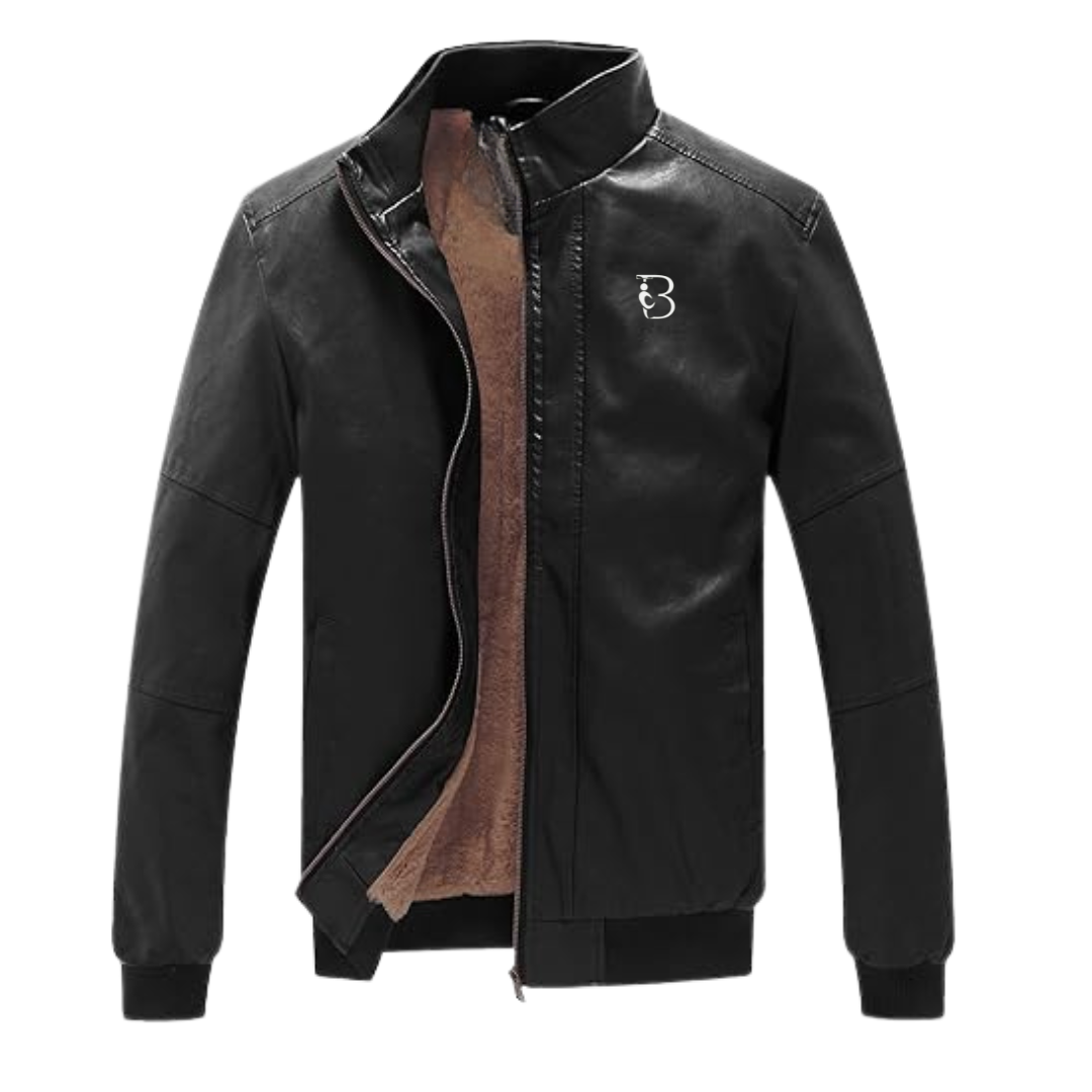 Men’s Faux Leather Bomber Jacket with Warm Flannel Lining – Stand Collar Winter Moto Jacket, Windproof Quilted Sleeve Outerwear