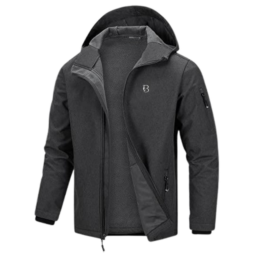 Men’s Waterproof Softshell Jacket – Windproof Hooded Fleece-Lined Rain Jacket for Hiking & Outdoor Performance